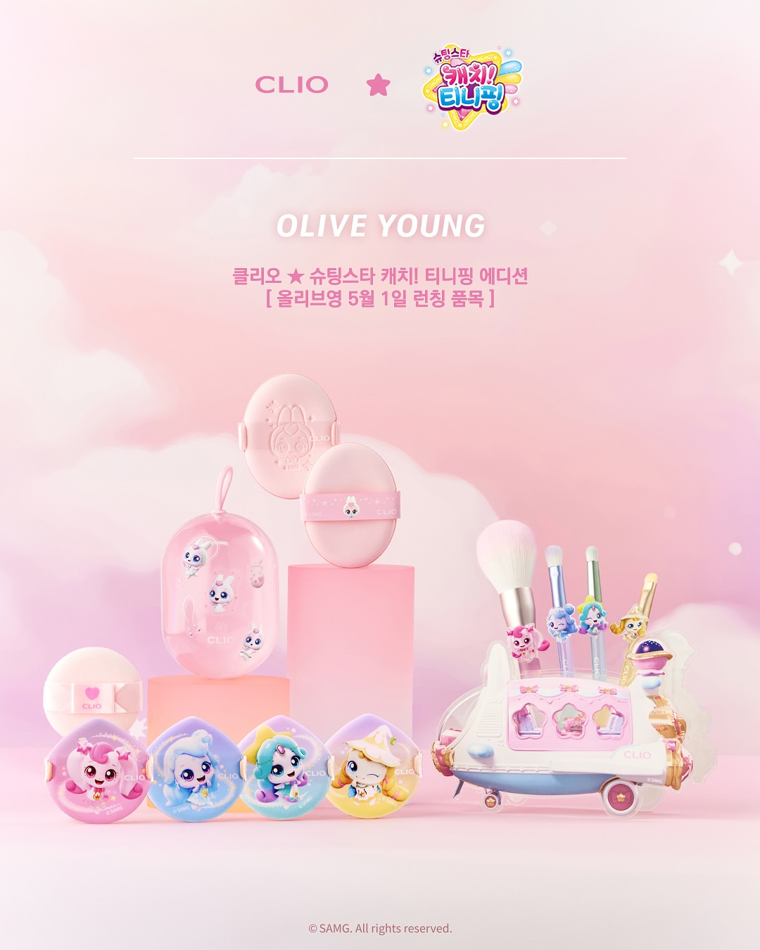 올리브영에서 5월 1일부터 8일까지 진행되는 '올영픽 기획전'에서는 클리오와 캐치! 티니핑이 협업한 한정판 메이크업 도구 세트를 만나보실 수 있어요.