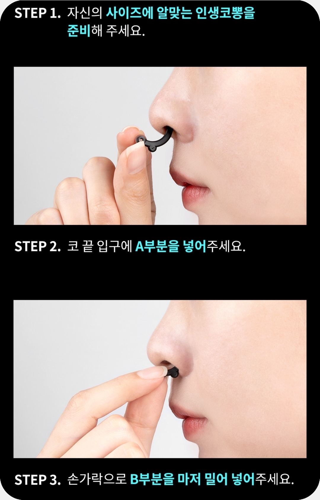 3. 코뽕을 콧대 양쪽 안쪽 라인에 부착 또는 삽입