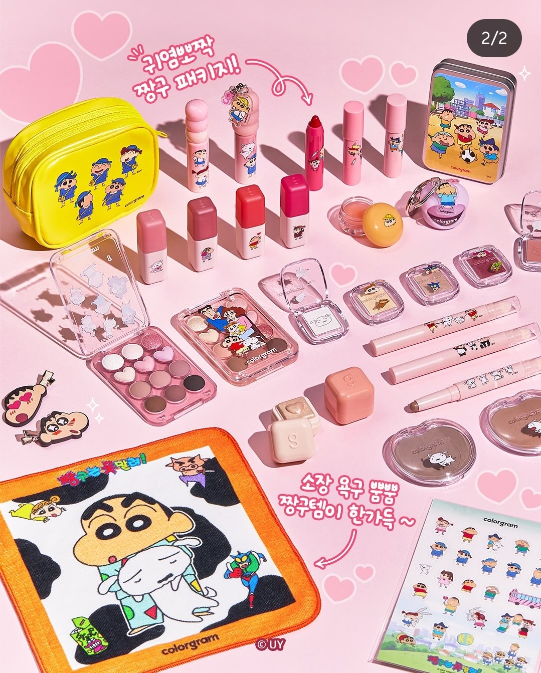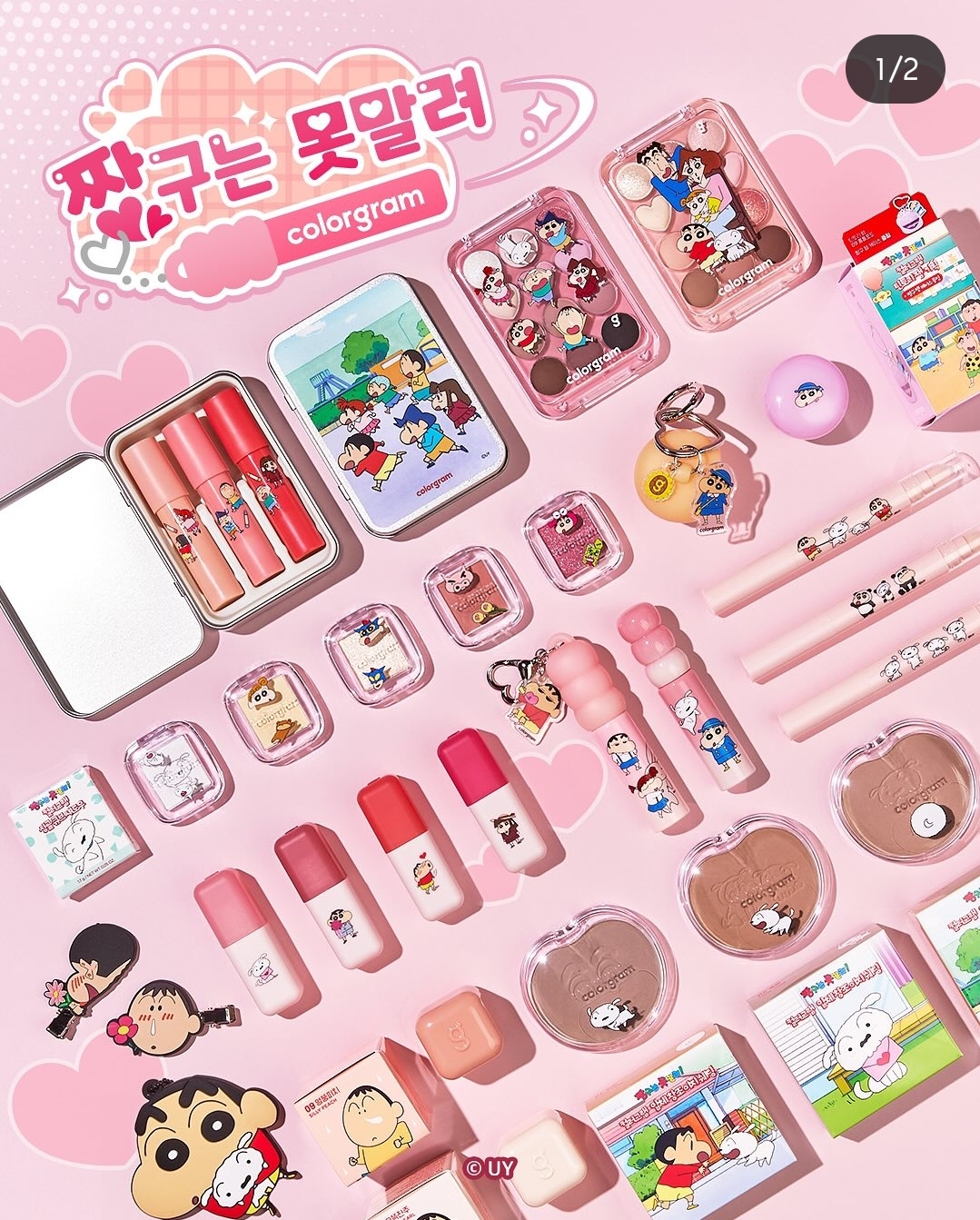 단순한 컬렉션이 아닌 메이크업 전 라인업과 다양한 짱구 굿즈까지 포함되어 있어 뷰티 마니아라면 절대 놓치면 안 되는 구성입니다.