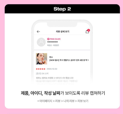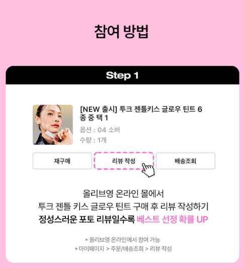 - 올리브영 온라인몰에서 제품 구매 후 정성스러운 포토 리뷰 작성