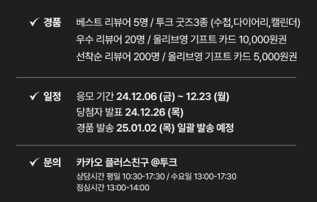 - 경품 발송: 2025.01.02 (목) 예정