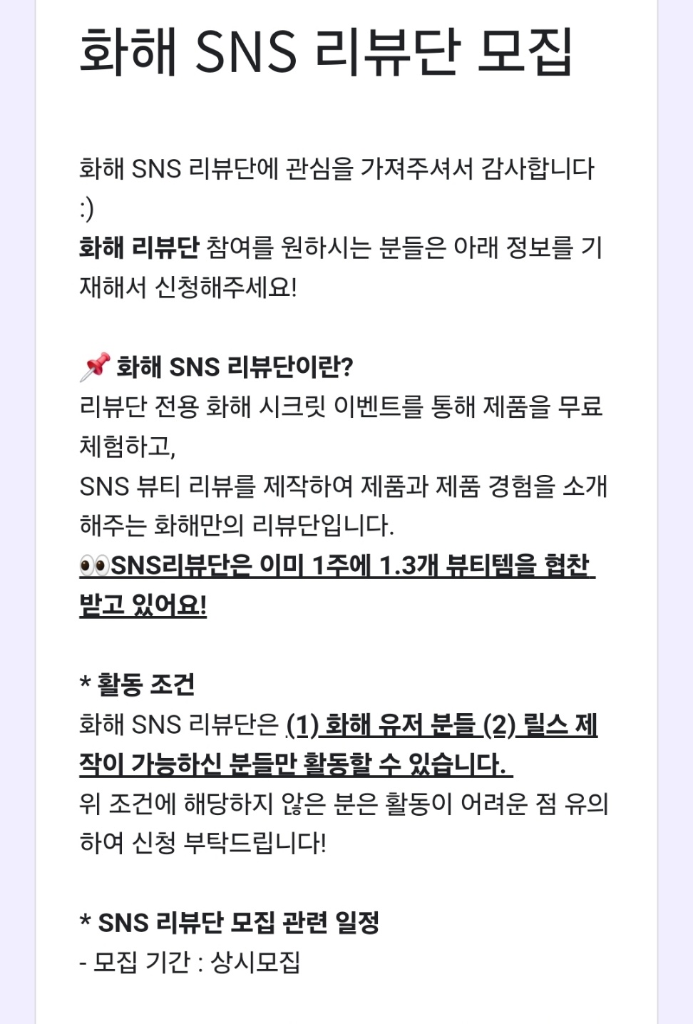 화해 SNS 리뷰단, 누가 참여할 수 있을까?