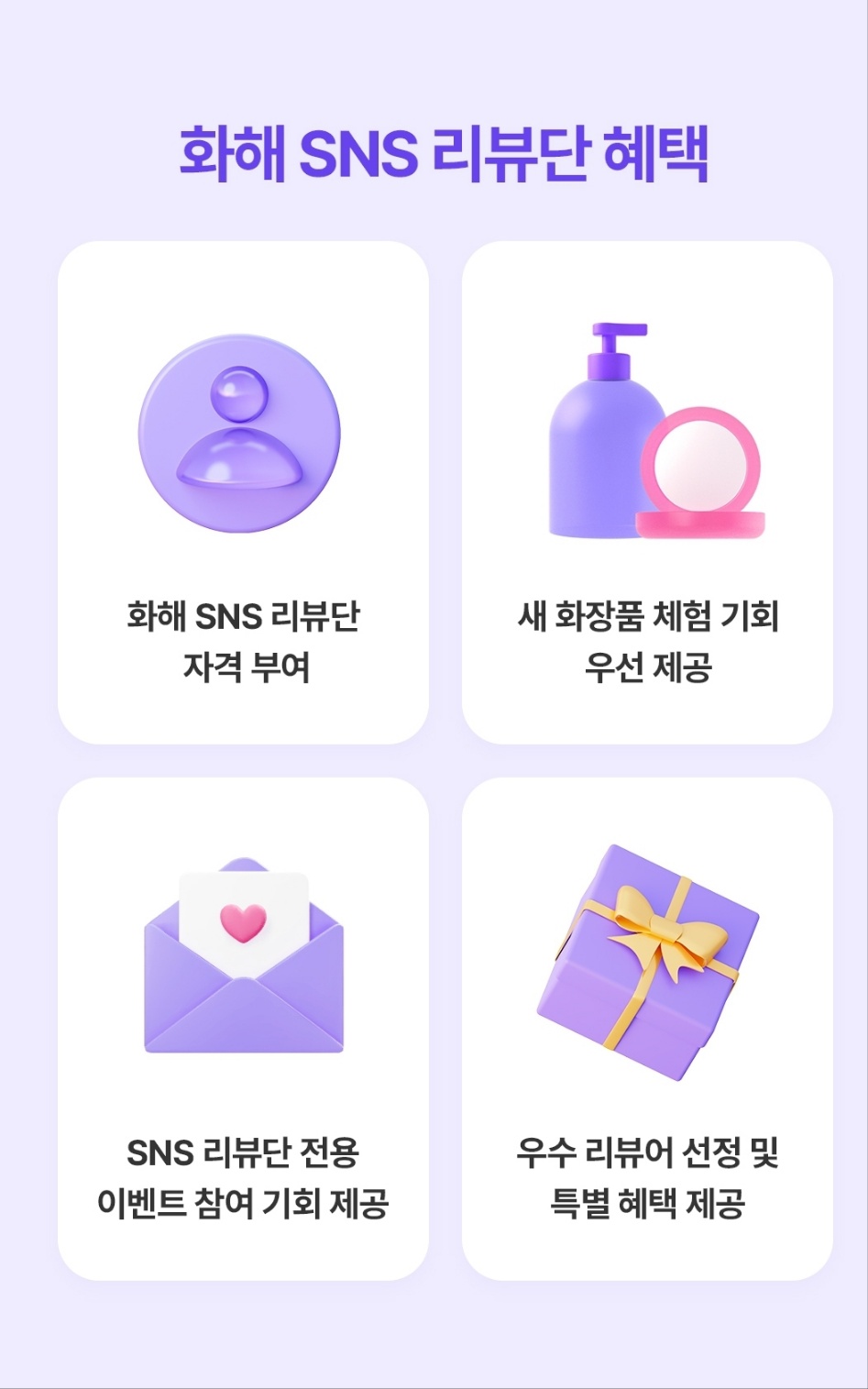 - 새로운 화장품 체험 기회 우선 제공