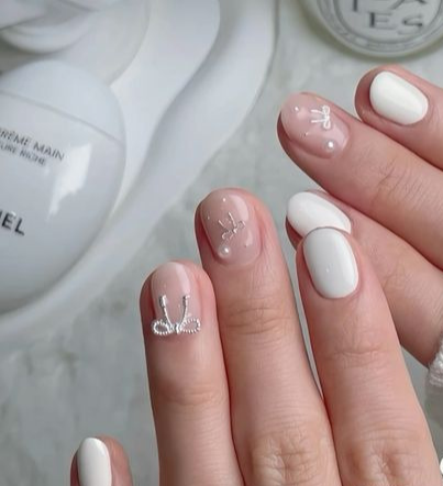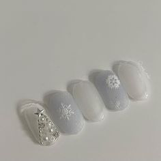 화이트와 실버 계열의 네일은 깨끗하면서도 세련된 이미지를 연출합니다. 눈 결정체를 아트로 표현하거나, 화이트 오팔 글리터를 활용해 얼음처럼 반짝이는 느낌을 내면 더욱 아름답죠. 또한, 화이트 베이스 위에 심플한 패턴이나 눈사람, 트리를 그려 포인트를 주면 단정하면서도 따뜻한 연말 분위기를 한껏 살릴 수 있습니다.